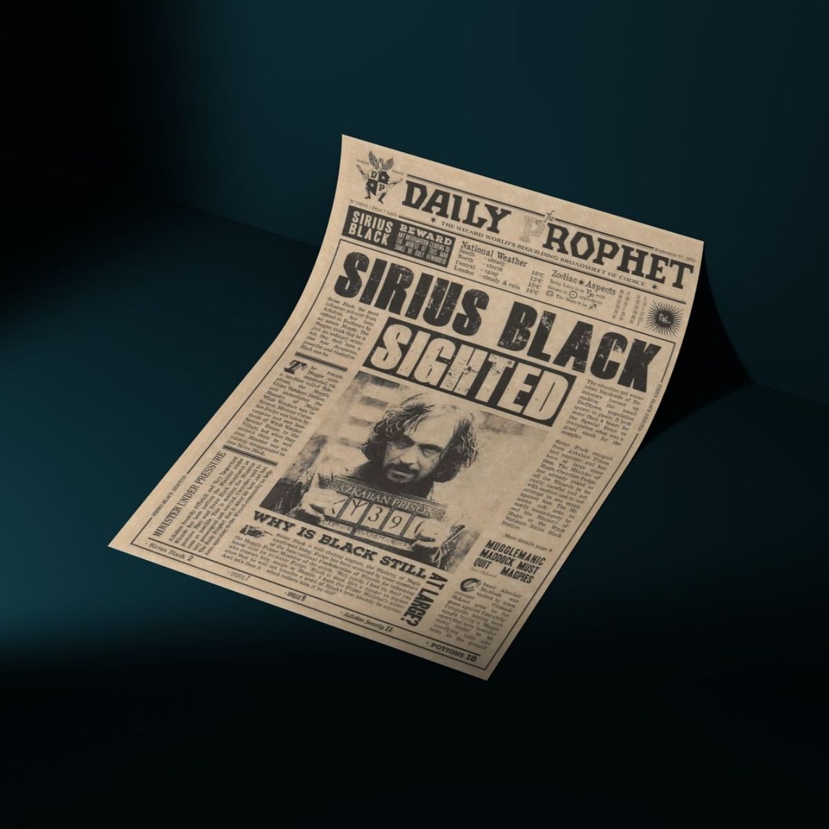 Su efecto 3D animado recrea el estilo del famoso periódico del mundo mágico, ideal para fanáticos que buscan una pieza llamativa, moderna y llena de encanto Hogwarts.